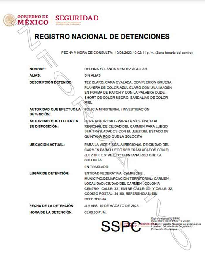 Doña Yolanda Delfina Méndez Aguilar madre de Zuryzaday Villaseñor y principal cabecilla de la organización que encabeza Zuryzaday Villaseñor fue capturada por la Fiscalía General del Estado de Quintana Roo en Campeche, es considerada líder de una facción del cartel de Sinaloa y era uno de los principales grupos criminales generadores de violencia en el Estado de Quintana Roo, quien además se encuentra en la lista de objetivos prioritarios de este organismo autónomo.
