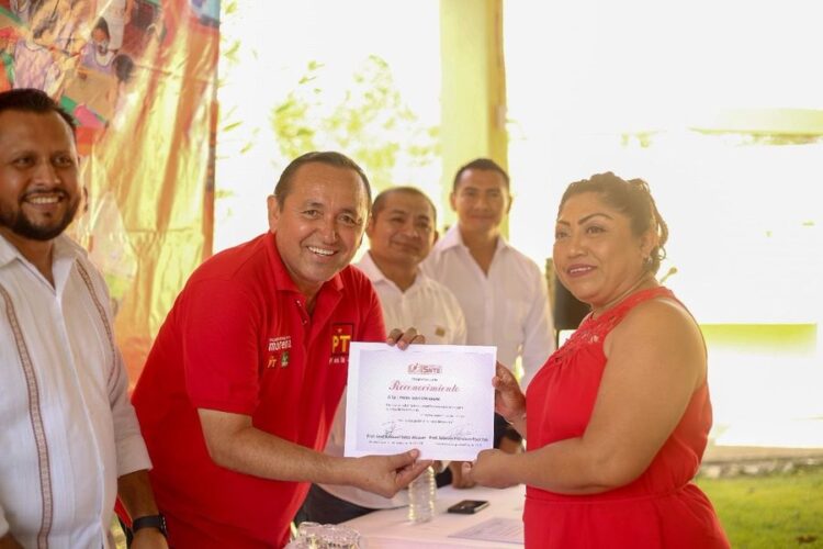 Realizado en conocido local de esta ciudad, el candidato de Morena-PVEM-PT fur invitado por los maestros en donde se entregaron reconocimientos a las educadoras por sus años de servicios, destacando la maestra Elsy Chuc Martinez por sus 40 años impartiendo clases y atendiendo asuntos magisteriales, como supervisora de la zona escolar de educación pre escolar.